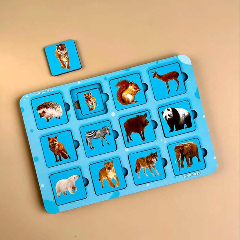 В наборе 24 плашки для игры. Она поможет наглядно показать, как реалистично выглядят взрослые животные и их малыши. Расскажите ребенку, например, как называют детеныша зебры, что любит есть, где живет? Поиграйте в мемори: разложите несколько плашек, посмотрите с изображенным ребенком. Затем переверните плашки и попросите ребенка найти это животное среди остальных плашек.