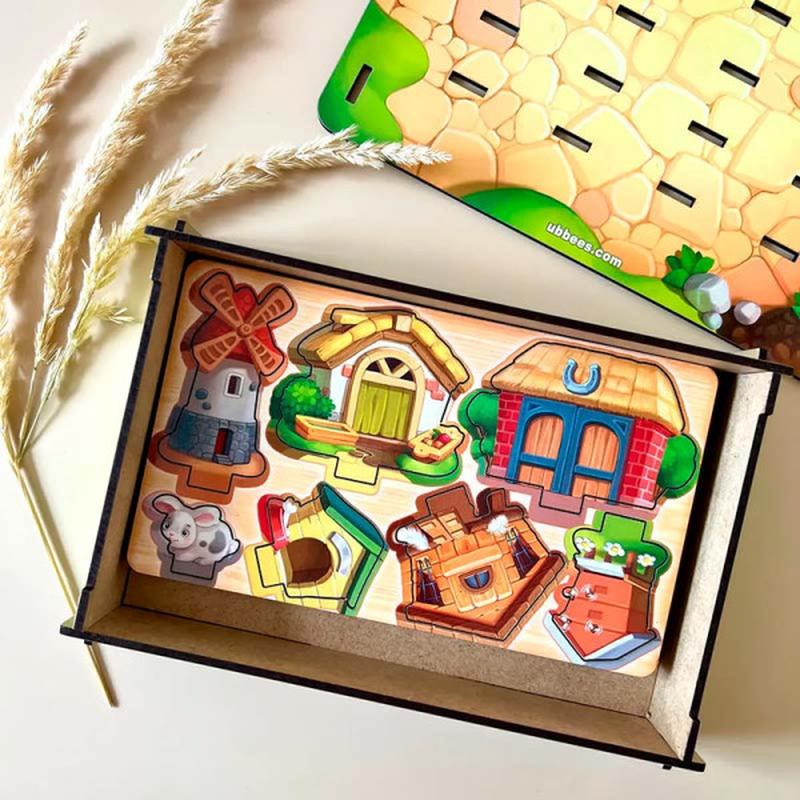 У комплекті 47 деталей + 24 завдання. "Панорама: ферма" - це перехід від площини до об'ємного сприйняття дитини. Гра - тренажер для моторики рук, завдання - вставити фігурку під прямим кутом. Непосиди навчаться концентруватися, орієнтуватися у просторі, розвинуть глазомір і збагатять словниковий запас. За допомогою карток-схем дитина створить картину, розвине сюжет, складе коротку розповідь на тему. Відмінний посібник для вивчення прийменників: постав корову праворуч від кошика і перед парканом.