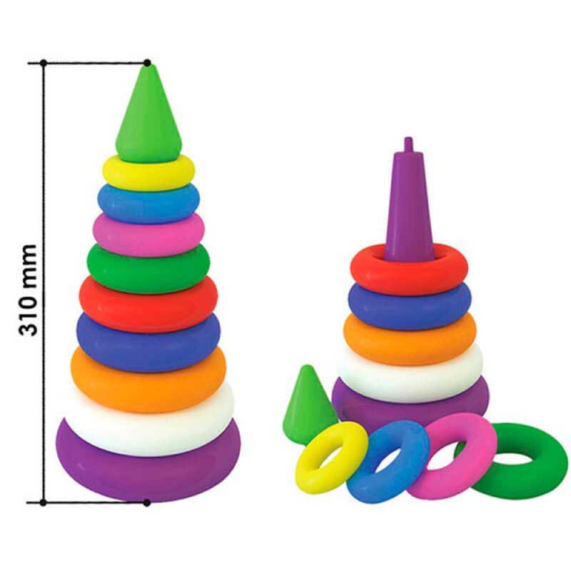 Пластмассовая пирамида - конус состоит из 8 колец и верхушки - погремушки. Производитель Украина Размер 32 х 14.5 см Производитель может изменять цветовую гамму товара без предупреждения. Наличие цветов уточняйте у менеджера компании.