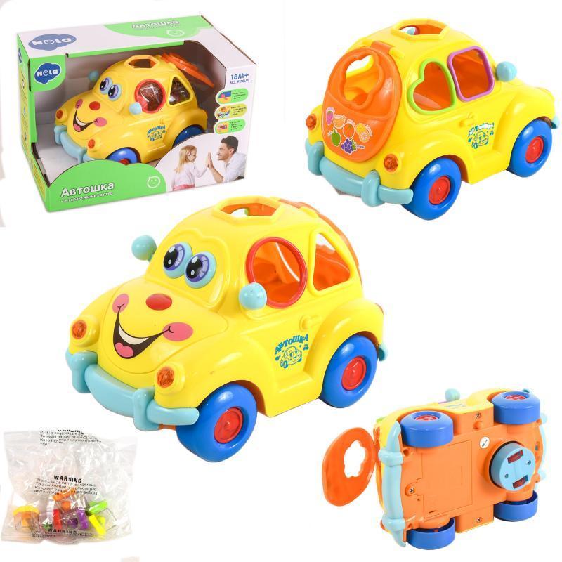 Іграшка-сортер "Автошка", на українській мові. Розвиваюча іграшка-каталочка. Отвори для різних фігур-фруктів. Звуки, музика та світло. Є декілька режимів - навчання, каталочка з музикою та сортер. Живлення - батарейки АА (не входять в комплект). Матеріал - пластик. Упаковка - коробка. Розмір - 24х15х15,5 см. Вік - від 1 року.