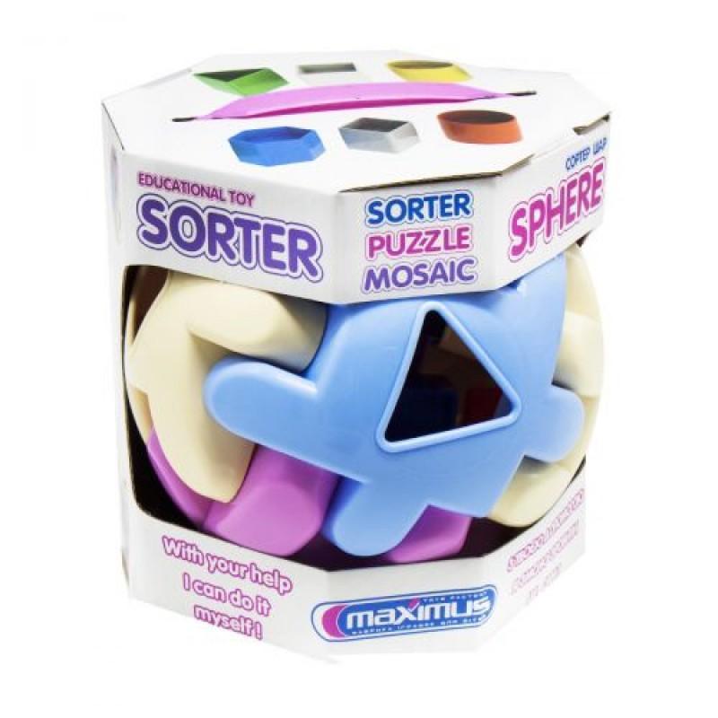 Іграшка-сортер "Куля". Різні кольорові елементи. Матеріал - пластик. Упаковка - коробка. Розмір - 14х14х13 см.