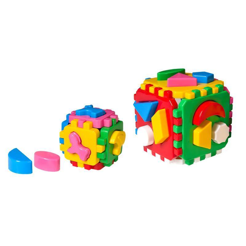 Іграшка - сортер "Розумний малюк" 1+1. В наборі 2 куби різних розмірів з геометричними фігурами та тваринками. Матеріал - пластик. Упаковка - пакет. Розмір - 12х12х20 см.