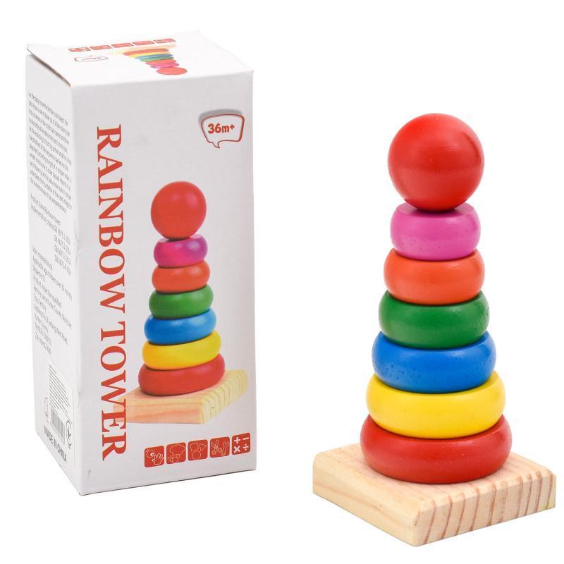 Іграшка розвиваюча "Пірамідка". Кольорові елементи різного розміру. Вік - від 1 року. Матеріал - дерево. Упаковка - коробка. Розмір - 7х7х15,5 см.