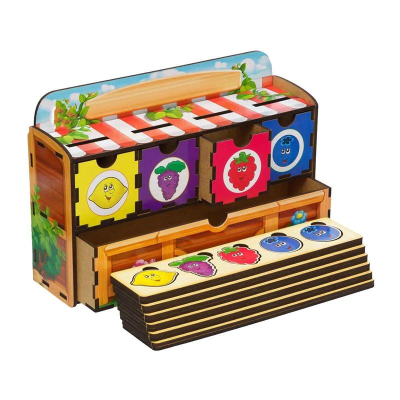 Игра состоит из 4 ящичков для сортировки вкладышей по цвету и рисунку, и 1 ящик, где находятся планки для укладки. В наборе 6 планок и 30 фигур ягод для сортировки. Набор выполнен из качественных и экологически чистых материалов. Изготовлен в Украине. Бренд: Ubumblebees Язык: Украинский Упаковка: Пленка Цвет: Разноцвет Вес в упаковке: 690 г Габариты в упаковке: 7 x 23 x 16 см Габариты без упаковки: 7 x 23 x 16 см Cтрана производитель: Украина Материал: Дерево Комплектация: 5 ящиков, 6 планок, 30 фигур