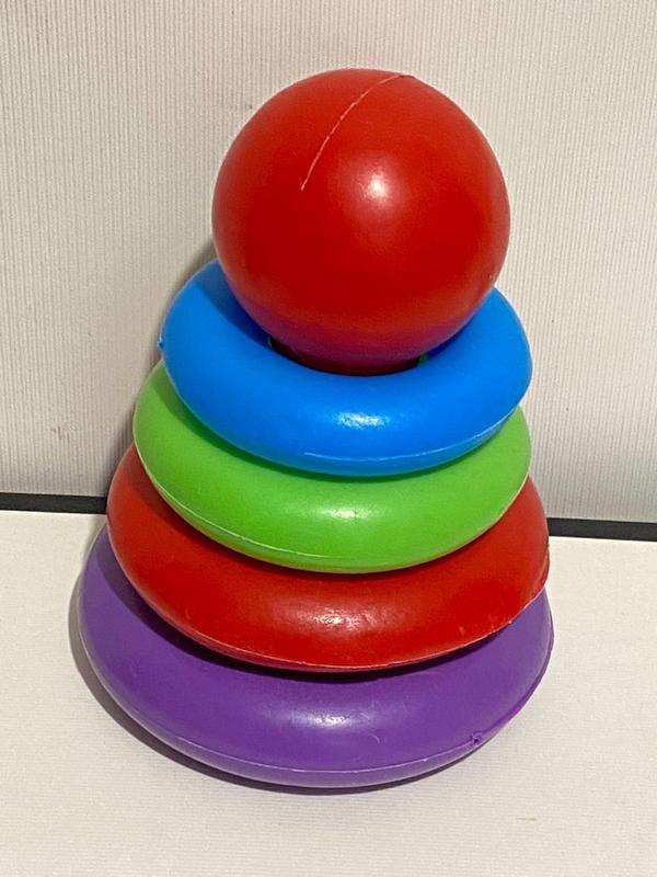 Развивающая игрушка Пирамидка по заключению психологов является лучшей для маленьких детей. Она способствует развитию первичных навыков (внимательности, наблюдательности, мелкой моторики) и познания в целом. Пирамидка состоит из 3 колец разного размера и цвета, нанизанных на ось с основанием, и колпачка. Кольца пирамидки обладают приятной поверхностью, их удобно держать в маленьких ладошках. Снимая и нанизывая колечки на основу, малыш знакомится с формой и размером предметов, учится пространственно мыслить, распознавать цвета и изучает количественный счет. Пирамидка состоит из 6 элементов.