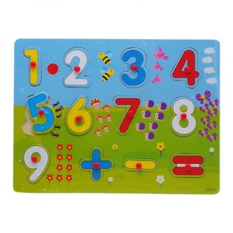 Деревянная рамка-вкладыш. Игра состоит из планшета-основы и красочных деталей с пластиковыми ручками. Задание ребенка: подбирать подходящие по размеру и форме детали и вставлять в специально отведенные для них места. Способствует развитию мелкой моторики, изучению цветов, форм и размеров.