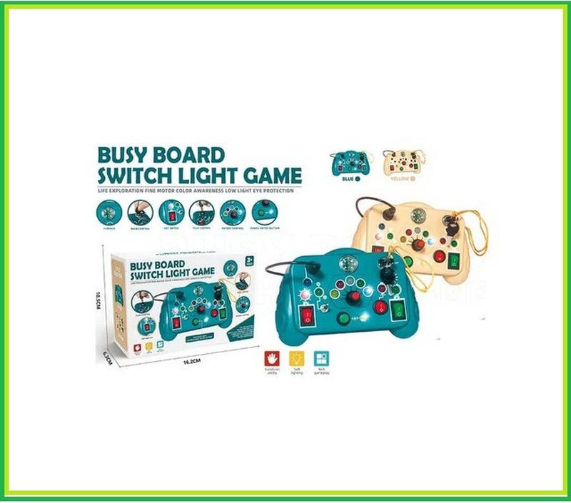 Бізіборд підсвічування перемикачі тумблери кнопки компас 2 кольори в коробці (ME-156) Подаруйте своєму малюкові безліч розваг разом із цим яскравим бізібордом! Бізіборди сприяють розвитку дрібної моторики рук та загальної координації рухів, а також допомагають дитині розвивати своє тактильне сприйняття. Цей бізіборд виконано у формі контролера для відеоігор, тому його буде зручно тримати у руках. Іграшка має багато різноманітних перемикачів та кнопок, які активують підсвічування діодних ліхтариків. Особливості: - розміри: 15х6х10 см; - бізіборд працює від двох батарейок типу "ААА" (не включені до набору); - бізіборд виконано у формі контролера для відеоігор; - іграшка має багато перемикачів та кнопок, які активують різнокольорові лампочки; - іграшка вмикається поворотом ключа; - бізіборд має функціональний компас. * Характеристики та комплектація товару можуть змінюватися виробником без повідомлення