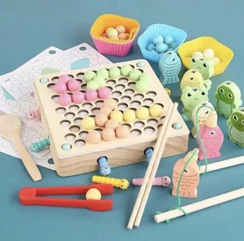Деревянная логическая доска( мозаика, магнитная рыбалка)