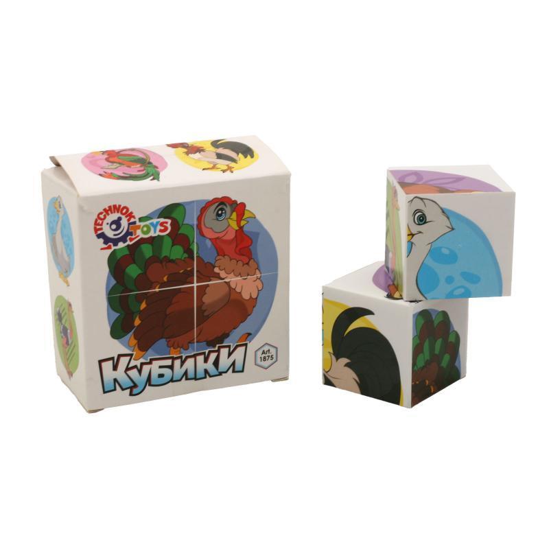 Іграшка "Кубики - пташки". 4 елементи, що дозволяють зібрати 6 зображень різних птахів. Матеріал - пластик. Упаковка - коробка. Розмір - 32х21х18 см.