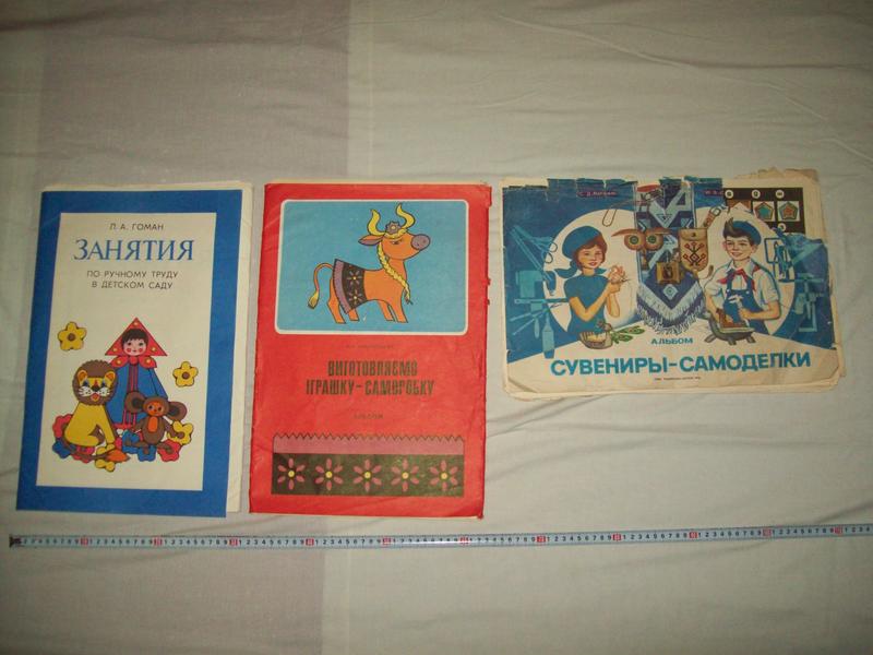 Три різних набори іграшок саморобок, виробництво СРСР, року випуску - 1982, 1986. Перше фото зліва - повний комплект 32 листи, розмір листа 44х29см., обкладинка, методичні вказівки. Справа - 27 аркушів з 28 за списком + два аркуші на кшталт не з цього набору, розмір аркуша 44х29см., обкладинка, методичні вказівки на самій обкладинці. Друге фото - 32 листи, розмір листа 44х29см., Обкладинка в поганому стані. Всі три видавництво – "Радянська школа". Другий – на листах подані зразки та викрійки саморобних іграшок – персонажів популярних мультфільмів, описано технологію та послідовність виготовлення кожної іграшки. Третій – для учнів 4-7 класів, у цьому наборі показані саморобки з металу, деревини, текстилю, природних матеріалів. Ціна вказана за один набір. Продається в стані як є, без претензій та повернення. Всі питання щодо стану будь-ласка задавайте тільки до покупки. Стан на фото. Додаткові фото за бажанням. Намагаюся відповісти на всі Ваші запитання тільки до покупки. Відправлю після оплати на картку Приват банку. Передоплата у розмірі вартості лота, а доставку оплачує покупець під час отримання. Відправлю Новою поштою по Україні, вартість доставки за тарифами Нової Пошти.Після покупки, Ви автоматично погоджуєтеся з наведеними вище умовами та положеннями. Після покупки, жодних претензій не приймаються.