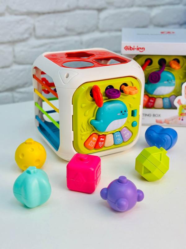 Игрушка 🧸, которая с первого взгляда увлечет малыша и поможет превратить каждый день в весело проведенное время с пользой ☺️! Незаменимая игрушка для любознательных малышей, которым уже исполнилось 6 месяцев 😍 Интересная логическая игра выполнена в виде куба с особыми гранями, выполняющими свою роль. В набор входят 6 игровых элементов различных форм и текстуры. Главная задача ребенка 😇 – самостоятельно найти отверстие каждого элемента. Каждая фигура имеет громкий элемент. Если соединить все фигуры, то получите полноценную ПИРАМИДКУ! Имеет музыкальную панель - пианино 🎹 , звуки животных 🐶🐷, шестерни ⚙️вращающиеся гибкие силиконовые шнурки для развития моторики 🖐️ 🛍️Упаковано в подарочную коробку Размер 15*15*15 см