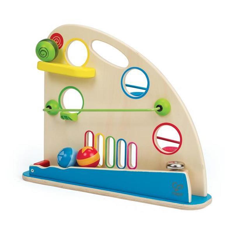 Розвивальна іграшка Hape Лабіринт для м'ячика - це гра з різнокольоровими дерев'яними кульками, віконцями та доріжками. Кульки котяться доріжками у двосторонньому лабіринті, проскакуючи через віконця. Отвір у верхній частині іграшки - ручка для перенесення. Відкрийте для себе задоволення від спостереження за об'єктами, які котяться по доріжках (швидко, повільно, вперед і назад). Коли ваша дитина підросте, розкажіть їй, як гравітаційна енергія перетворюється на імпульс. Надихніть її на самостійні дослідження. Діти віком від 12 місяців будуть насолоджуватися дзвоном дзвіночка, коли кулька досягне кінця доріжки. Ця іграшка у стилі «марбл ран» зачарує дітей. Насолоджуйтесь різнокольоровими дерев'яними кульками, які знову і знову летять доріжками. Іграшка виготовлена із міцної деревини, має добре відполіровані поверхні та закруглені краї для безпечної гри. Розвивальна іграшка Hape Лабіринт відзначена на спеціалізованих виставках: - платина Oppenheim Toy Portfolio 2014; - вибір батьків - 2014; - ASTRA «Найкращі іграшки для дітей», 2014; - переможець Today's Parent Toy Guide 2014 року.