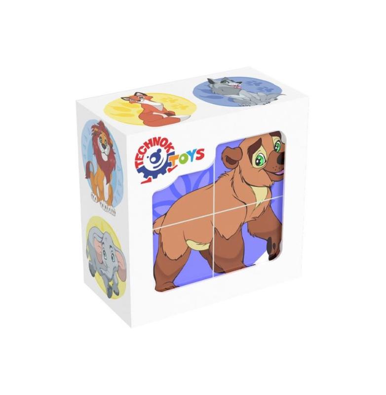 Набор состоит из 4 кубиков, на каждой грани кубика фрагменты изображения диких животных, которые нужно сложить в один рисунок. Развивает логическое мышление, моторику пальцев, фантазию. Размер каждого кубика: 4х4х4 см. Размер упаковки: 8х8х4 см.
