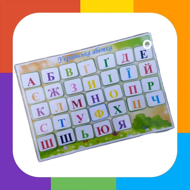 Гра складається з аркуша А4 та 33 деталей на липучках. Дитина під час гри вивчає та закріплює літери .