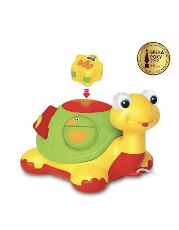 Каталка-сортер ЧЕРЕПаХАХА. На панцири ракушки, расположенные 4 отверстия в виде различных геометрических фигур • круг • квадрат • треугольник• звезда. Ребенок должен вложить фигурки в соответствующие отверстия. Все 4 фигурки представляют собой трансформеры, которые мгновенно превращаются в забавных животных! Каталка-сортер ЧЕРЕПАХА-ЗНАЙКА Kiddieland не только забавляет малыша, но и помогает в развитии таких навыков • моторика рук • координация движения • логика • язык • кругозор. Игрушку можно катать за собой на веревке. Познайте мир вместе с Черепахой. Питание: 2 батарейки АА. Размер игрушки: 26х18х15 см. Рекомендовано для детей в возрасте от 12 месяцев. Цена нового - 1200 грн.