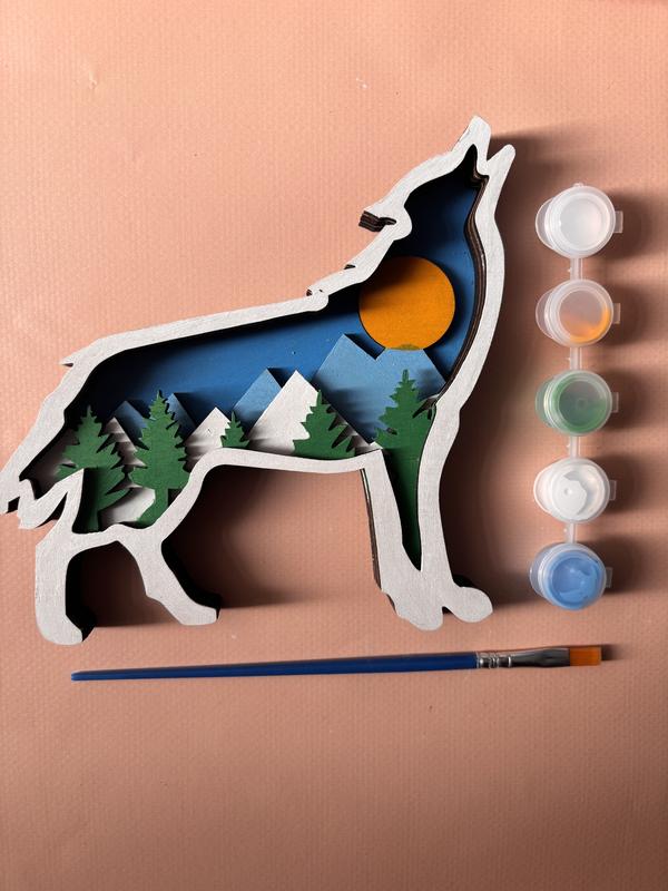 Запрошуємо поринути у світ креативності разом з нашою дерев'яною моделлю вовка! Це чудовий набір для творчості, який надихне вашу дитину створити власний унікальний витвір. У комплект входить усе необхідне: Модель вовка з фанери Інструкція для легкого складання Акрилові фарби, безпечні для дітей Клей ПВА для надійного з’єднання деталей Пензлик для зручного нанесення фарби Фарби яскраві та стійкі, а головне – повністю безпечні для маленьких художників. Це відмінний подарунок, який допоможе розвинути уяву, моторику та відчуття кольору. Подаруйте дитині можливість створити свій власний витвір мистецтва! Набір включає в себе Дерев'яні деталі (5 шарів); Акрилові фарби; Клей ПВА; інструкція.