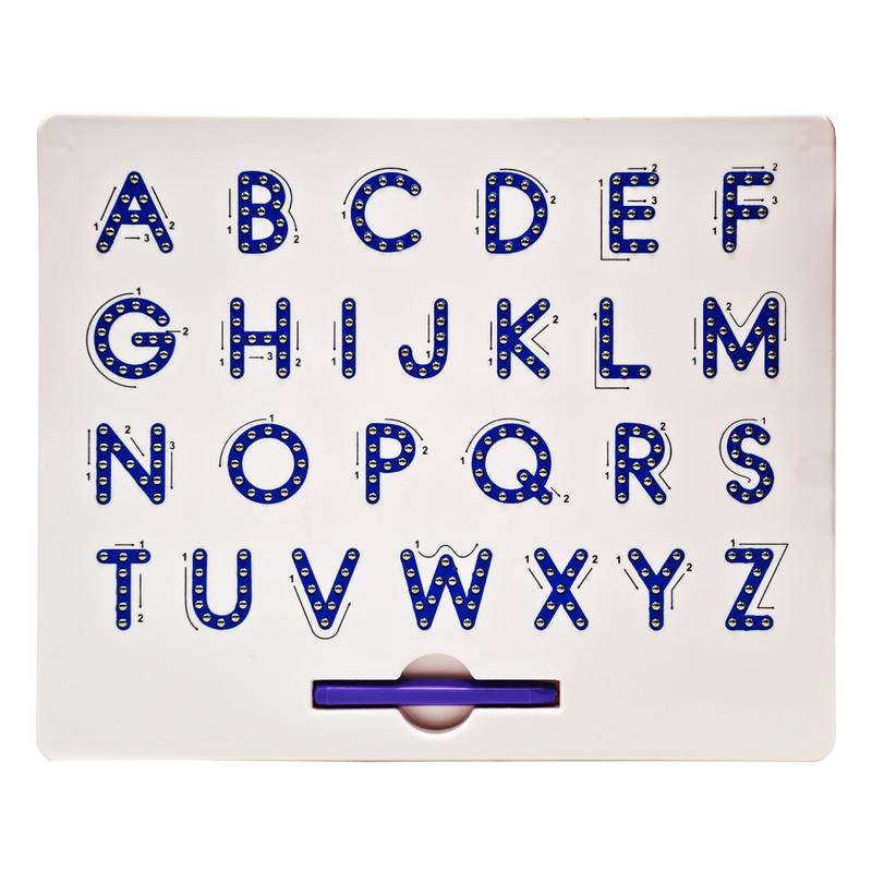 Магнитная доска: английский алфавит в коробке. Материал – пластмасса. Используя магнитную ручку, проводим по стрелкам, указанным на доске и тренируем руку к письму. Для детей от 3 лет. Размер коробки: 32Х26.5Х2 см