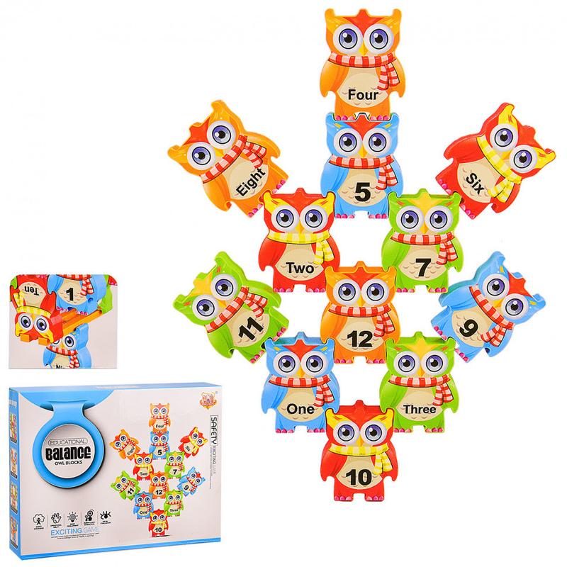 Игра-Баланс Совы Увлекательная и поучительная игра. Задача заключается в том, чтобы каждый игрок добавлял по одной сове таким образом, чтобы вся конструкция оставалась в состоянии равновесия. При помощи цифр задание можно усложнить выстроить их по порядку, начиная с первой или двенадцатой. Благодаря такой игрушке у малыша развивается фантазия, логика, мелкая моторика, тренируется пространственное мышление, изучение цветов. В комплекте: - 12 фигурок сов