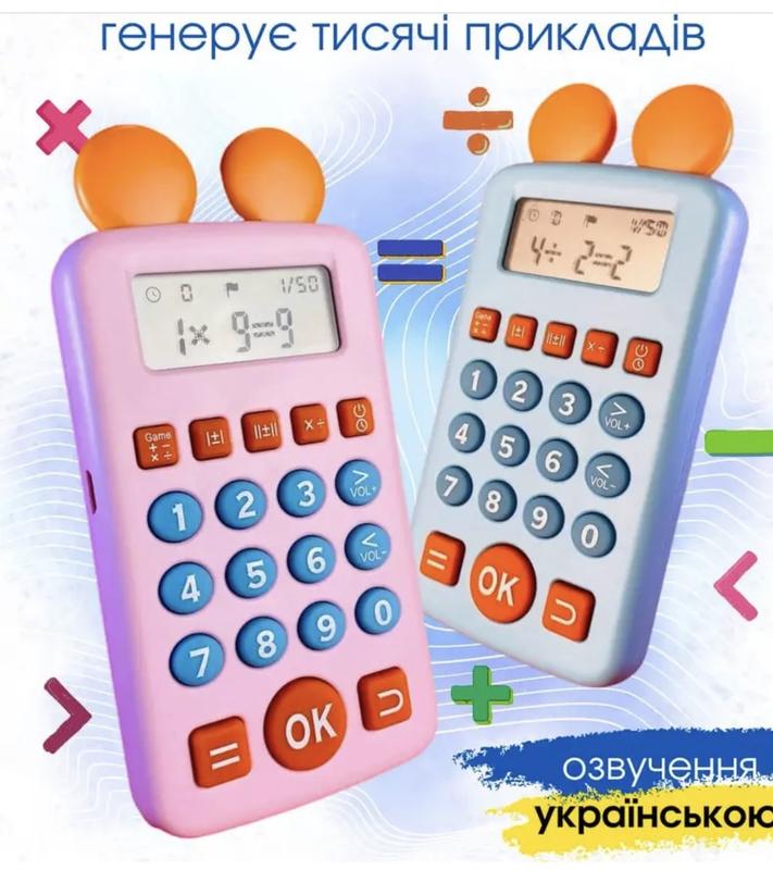 Интерактивный калькулятор "Машина раннего образования" будет прекрасным помощником в изучении основ математики. Игрушка предлагает ребенку решить простые математические примеры на добавление, вычитание, умножение и деление. Есть несколько режимов игры с математическими примерами различной сложности. Работает от аккумулятора, провод для зарядки в комплекте. Украинская озвучка. Разные цвета в ассортименте.
