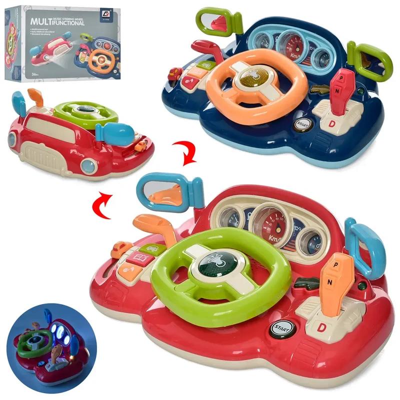 Кермо музичне CY-7076B Музичне кермо CY-7076B Музичний кермо Озвучено англійською мовою Функції: - каже фразами - співає дитячі пісні - веселі мелодії - розповідає історії - сигнал машини - важіль управління - підкомірники - тріскачка - світло 2 кольори Батарейки 3 шт. типу АА у комплект не входять Упаковка: коробка Дитяче музичне кермо з коліщатками можна використовувати як машинку, а можна приклеїти за допомогою присосок до столика. Інтерактивна іграшка має безліч захоплюючих функцій, таких як: відтворення мелодій, дитячі пісні, оповідання, звуки машини та світлові ефекти. # звуки машини, гальма в коробці р. 34,6*15,1*24,4см