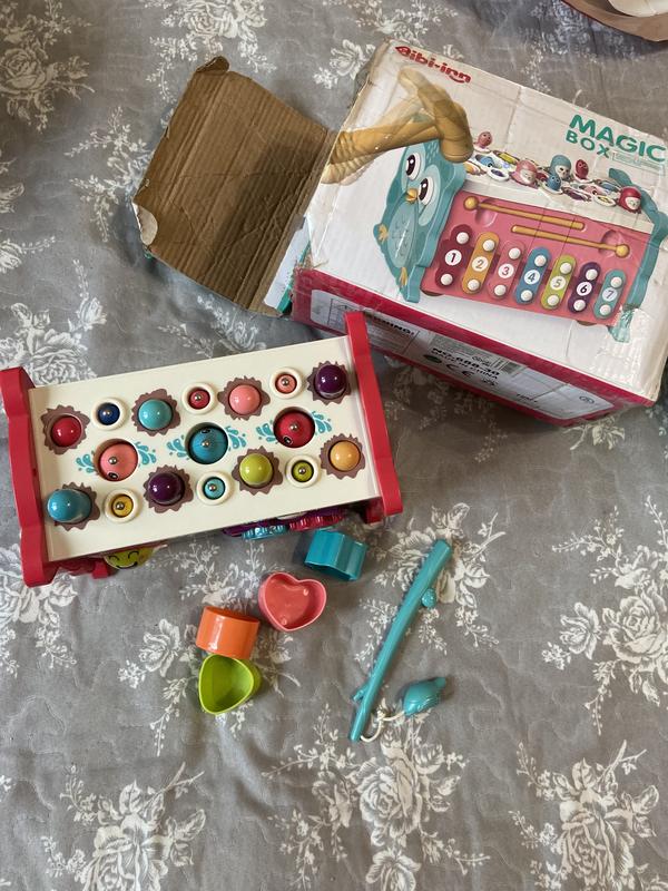 Игрушка развивающая Монтессори Magic Box 8 в 1. Стан идеален, только повреждена коробка. После одного ребенка. Дополнительные фотодам при необходимости. Развивающая игра с множеством интересных и полезных функций: - магнитная рыбалка; - игра "Стукалка" с молоточком; - цветные крутилки в виде шестерен; - лабиринт "Машинки"; - лабиринт "Сбери сову"; - Циферблат;