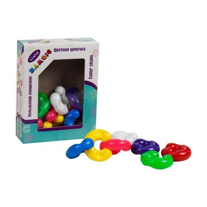 Цветная цепочка №1 (14 элементов). Цветные, пластиковые звенья, которые можно соединить между собой в различном порядке. Размер детали - 6 х 2 х 5,5 см._ Бренд: Bamsic Упаковка: Коробка Цвет: Разноцвет Вес в упаковке: 200 г Габариты в упаковке: 16.5 x 5.5 x 21 см Габариты без упаковки: 17 x 6 x 21 см Cтрана производитель: Украина Материал: Пластик Комплектация: 14 деталей