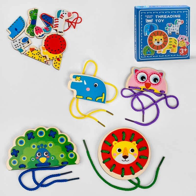 Деревянная игра Шнуровка – это увлекательная и очень интересная игра, которая позволит малышам проявить творческие способности и развить мелкую моторику рук. В наборе 5 игровых панелей в виде животных, 5 шнурков, аксессуаров. * Характеристики и комплектация товара могут меняться производителем без предупреждения