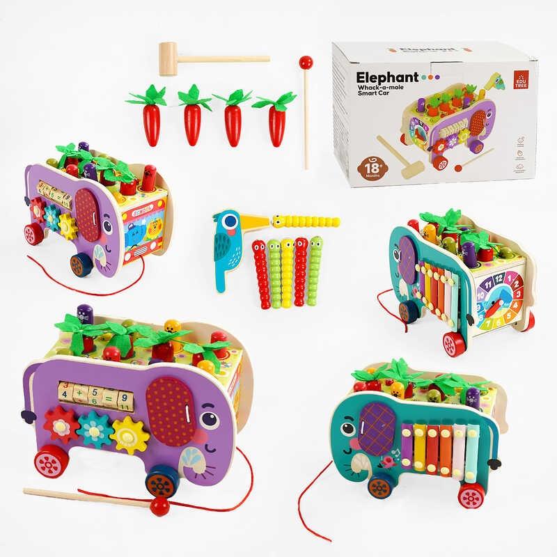Каталка логическая деревянная, ксилофон, шестерни, пальчиковая игра, часы, стуковка