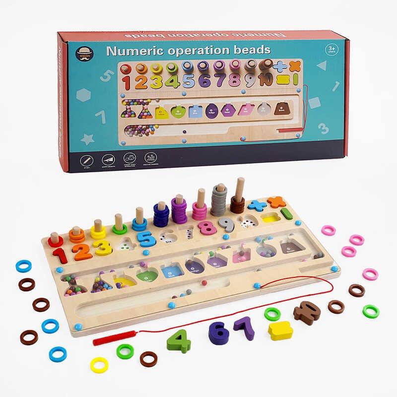 Доска логическая деревянная, колышки с кольцами, сортер, цифры, магнитный карандаш, цветны...