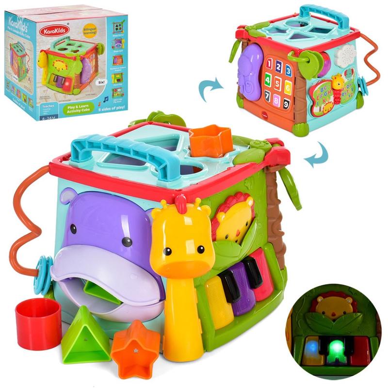Детский сортер KK2697 – это инновационная интерактивная игрушка, направленная на развитие различных аспектов детского образования и развлечения. Эта замечательная игрушка включает в себя множество возможностей для развития малыша, а именно: обучения английским буквам и цифрам: Ребенок может изучать буквы и цифры английской алфавиты, прослушивая их звучание. Пианино: Сортер KK2697 также имеет встроенное пианинко, которое позволяет ребенку экспериментировать с музыкальными нотами и создавать собственные мелодии. Это помогает развивать музыкальные способности и ритмичный слух. Лабиринт: Для развития моторики и координации ребенка сортер KK2697 имеет встроенный лабиринт, где малыш может управлять шариком, пытаясь пройти сложность лабиринта. Музыка и звук: Игрушка воспроизводит разнообразные музыкальные мелодии и звуки, которые способствуют развитию слуха и восприятия музыки ребенком. Световые эффекты: световые эффекты на сортере KK2697 добавляют веселье и интригу детскому исследованию. Они делают обучение и игру еще более привлекательной для маленьких детей. В целом, сортер KK2697 - это идеальная игрушка для обучения и развития детей, объединяя в себе обучающие и развлекательные функции, которые способствуют KK2697