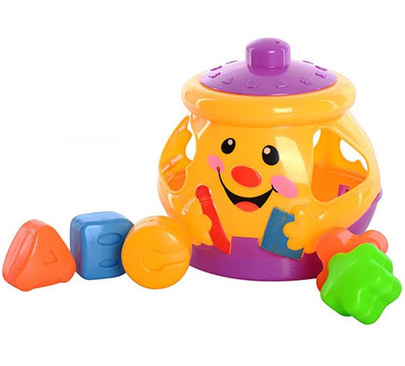 Горщик сортер +5 форм брязкальця. Набор включает пластиковый горшок с отверстиями разной формы и 5 погремушек, каждое из которых имеет свой уникальный звук.