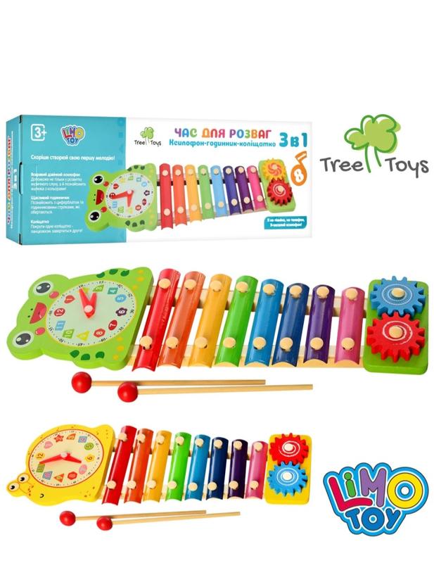 Материал: дерево В наборе: ксилофон 8 тонов, часы, шестеринки, палочки 2 шт В двух вариантах