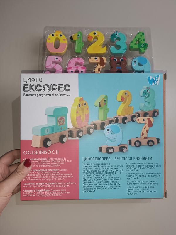 Дерев'яний поїзд , з цифрами на магнітах цифро експрес