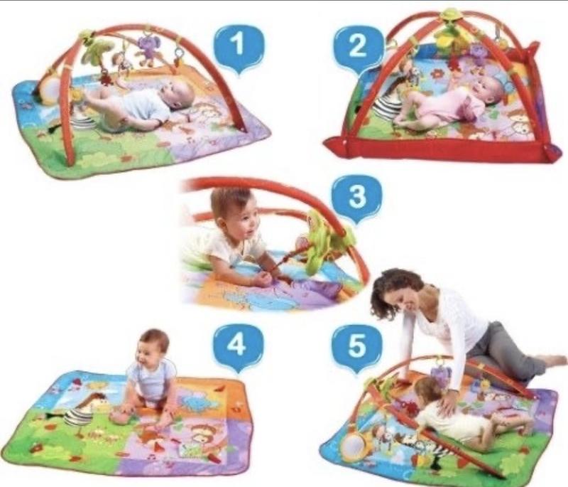 Детский развивающий коврик от Tiny Love. Все рабочее, свет и музыка. Все мягкие игрушки можно стирать, как и сам коврик. Включается музыка, есть два режима громкости и два варианта мелодии. Из недостатков шуршалки, что на ушках завязались почти не шуршат), в обратной стороне коврика в катышках, но на функционал не влияет, потому что его не видно, и зеркало поцарапано В подарок отдам дугу, перебито у крепления с обеих сторон, мы вешали на кроватку, было в самый раз)