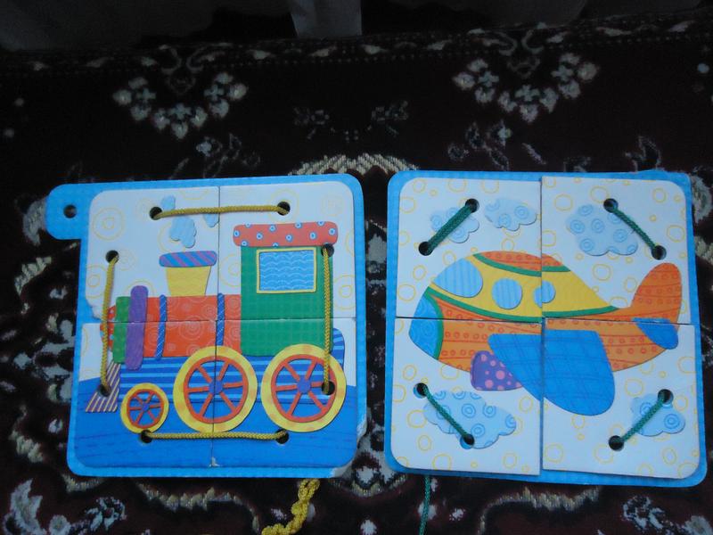 Развивающая головоломка для детей 2-х лет. Размер 15 х 15. Материал: плотный картон. Необходимо собрать картинку и прошить ее шнурком, что развивает моторику пальчиков и усидчивость малыша. Стоимость за 1 единицу. + дополнительно есть картинки 10 грн. за единицу.