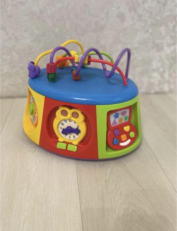 Ігровий розаиваючий мультицентр: на одній із сторін іграшки розташовані клавіші піаніно та інші музичні інструменти з реалістичними звуками, на іншій – звучать три дитячі народні пісеньки у супроводі світлових ефектів: «Два веселі гусаки », «Стрекоза», «Каравай», красиві картинки та пізнавальні вірші познайомлять малюка з пори року, годинник у формі сови допоможуть ознайомитися з розпорядком дня, справжній сюрприз – комп'ютер з 2 пісеньками про форми, завдяки яким малюк дізнається, як виглядають фігури і як їх малювати, нагорі розташований лабіринт з яскравими намистинами для розвитку дрібної моторики. , мова, пам'ять, логіка, кругозір, мислення. Розмір іграшки: 34x25x24 см. Рекомендовано для дітей віком від 12 місяців.
