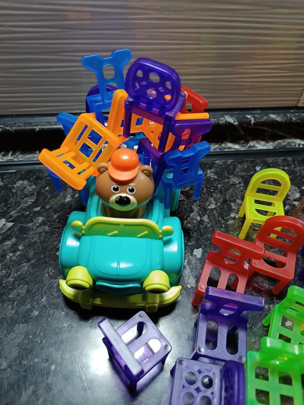 Состояние новой! Машинка ездит по кругу, а в это время нужно складывать по стульчику сверху, чтобы сложилась вся гора стульчиков на машинке, и не упала при этом.
