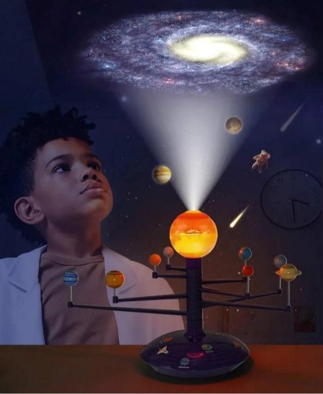 Сонячна система Science Can для дітей, набір моделі промовистої сонячної системи, проєктор планетарія з 8 планетами, космічні іграшки STEM для хлопчиків і дівчаток 3, 4, 5 років Сонячна система 3D-проєктор Планети Космос Science Can 3D за допомогою проєктора АНГЛІЙСЬКИЙ І КИТАЙСЬКИЙ ЯЗИКОВИЙ ВЕРСІЯ Малі Астронавти та дослідники космосу можуть зануритися в захопливий світ Всесвіту завдяки 3D сонячній системі з проєктором. Модель сонячної системи має переконливий звук і функцію проєктора: якщо діти натискають символи планети на базі планетарія, вони почують захопливі факти про окремі планети англійською мовою. Тим часом, системи обертаються навколо сонячної системи на шляху до місця призначення, вони обертаються навколо сонця, яке завдяки світлодіодному світлу також виконує роль проєктора. Чудова іграшка також для вивчення англійської мови. Для 3 батарейок АА (батарейки не входять). Це 24 фільми для дослідження космосу. Покажіть дітям сонячну систему, космічні кораблі, космонавти та планети. Вставте слайди в проєктор, зображення можна проєктувати на стіну, відрегулюйте верхню кнопку, щоб отримати максимально чіткий ефект, і починайте нашу подорож у космос!