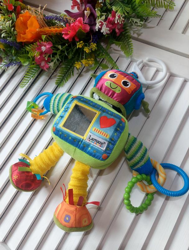 Мягкая развивающая игрушка-подвеска Lamaze Робот Расти Выполнена в виде забавного робота с безопасным зеркальцем на лицевой стороне и шелестящими ножками. У робота вращающая двухсторонняя голова с трещоткой (можно менять лица робота). В обеих ручках робот держит рельефные кольца, которые можно использовать как прорезыватели. Игрушка имеет сверху и снизу колечки, за которые можно подвешивать игрушку к кроватке, коляске или манежу. Мягкая игрушка-подвеска способствует развитию мелкой моторики, сенсорному и цветовому восприятию. Состояние отличное 🫶 После моей дочки. На все вопросы дам ответ 🫶 С уважением Ксюша.