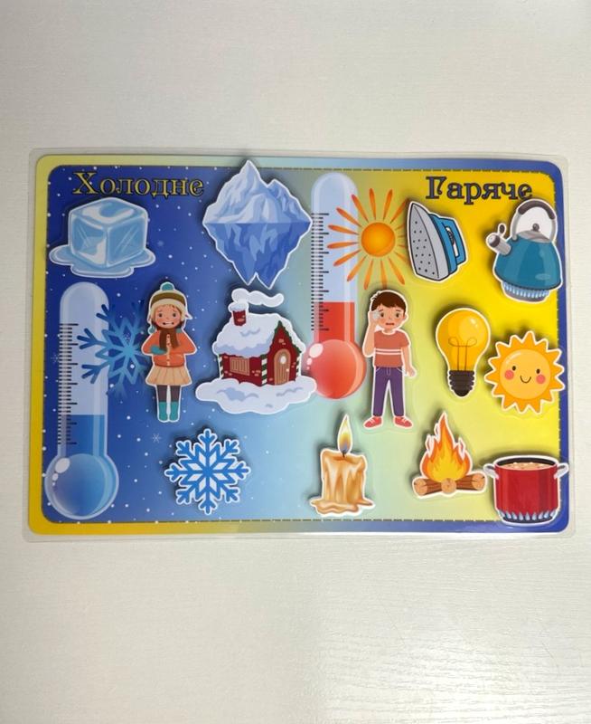 🔥❄️ Гра «Холодне – Гаряче» ❄️🔥 Яскрава гра на липучках допоможе малюкам зрозуміти, що таке холодне, а що гаряче! ☀️❄️ Дитина навчатиметься сортувати предмети, розвивати логіку та дрібну моторику. 💡 Як грати? ✅ Розглядаємо предмети та пояснюємо, що вони означають. ✅ Допомагаємо дитині правильно розмістити картки на відповідні сторони. ✅ Граємо разом та розповідаємо цікаві історії про літо й зиму! 📌 Виготовлено з любов’ю для маленьких дослідників! Фотодрук+міцна ламінація