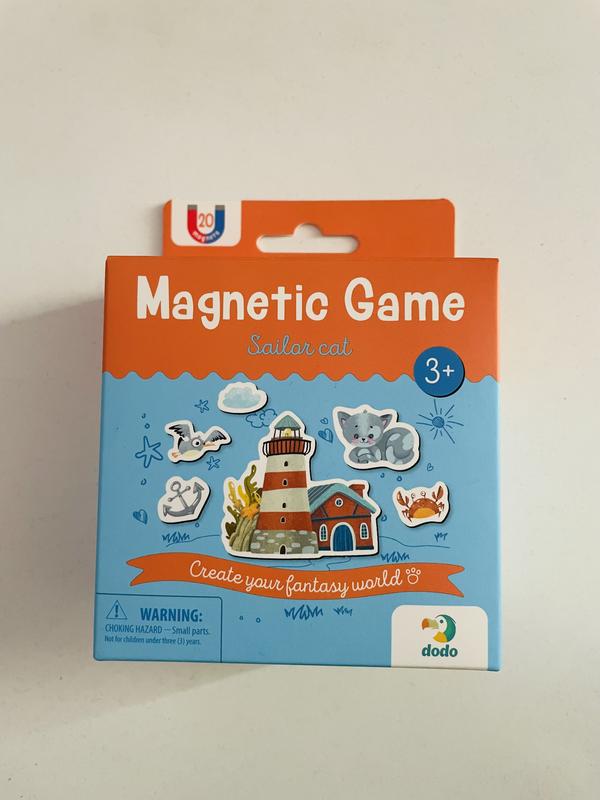 МАГНІТНА ГРА КОТИК-МОРЯЧОК. Возраст: 3+. Количество игроков: от 1-го. Комплектация: 17 элементов. Размер коробки: 14х10х5 см.