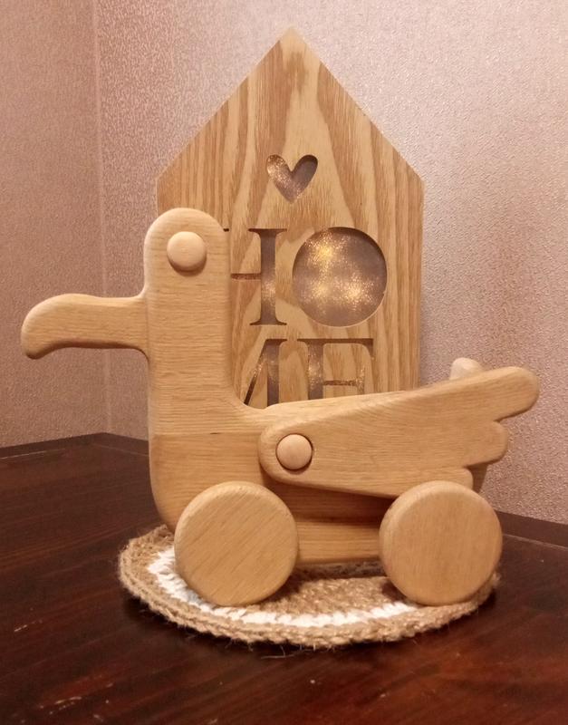 Одесская чайка. Сделана из натурального дерева, покрыта маслом для детских игрушек. Подвижные крылышки при движении. В наличии и под заказ.