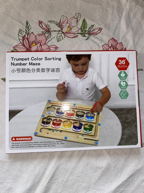 ДИТЯЧИЙ ДЕРЕВ'ЯНИЙ МАГНІТНИЙ КОЛЬОРОВИЙ ЛАБІРИНТ ІЗ ЦИФРАМИ Сприяє розвитку мислення та навичок у дітей 3+. Компактний розмір, зручно брати у подорожі. Закриті кульки, магнітний стрижень на шнурку, без ризику для дітей. Виготовлений із берези та безпечної фарби. Для дітей 3+: допомагає вивчати кольори, числа та розвивати лічбу.