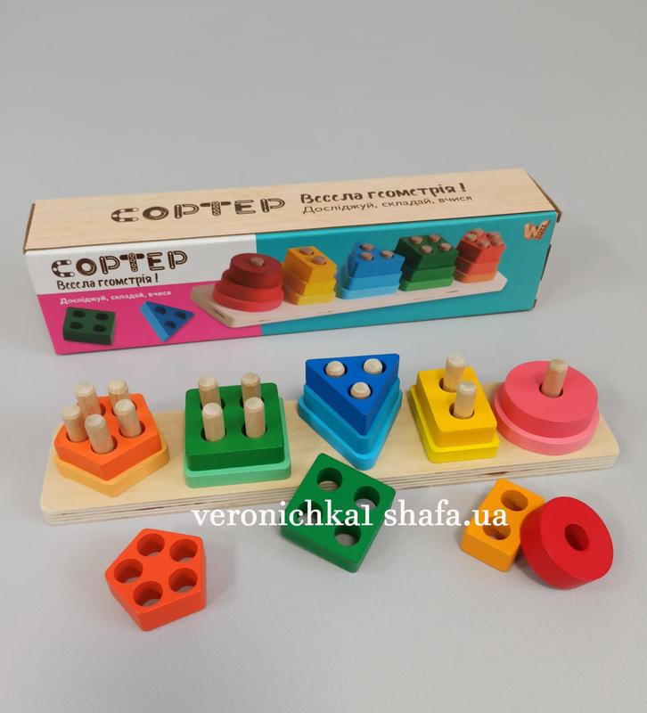 Захватывающая деревянная пирамидка сортер геометрика, геометрический сортер – заинтересует вашего малыша надолго. Изучайте геометрические фигуры вместе с деревянной игрой. Эта игрушка сразу привлечет внимание малышу: яркая цветовая гамма, легкие игровые элементы разной формы и удобная платформа с колышками. Она познакомит малышей с новыми цветами, геометрическими формами и поможет в обучении счету до 10. Игра представлена в виде основы с колышками и 5 пирамидками. Каждая пирамидка - отдельная геометрическая форма, которая состоит из цветных элементов. Собирая каждую пирамидку, малыш развивает логическое и пространственное мышление, мелкую моторику рук. Особенности: - игра отличается приятной цветовой гаммой; - представлена в виде платформы с колышками и игровыми элементами, которые отличаются по форме и цвету; - включает 5 пирамидок, которые состоят из 3 игровых элементов; - игрушка изготовлена из экологически чистых материалов и не содержит вредных красителей; - игровые элементы не имеют острых углов, поэтому вполне безопасны для детей.