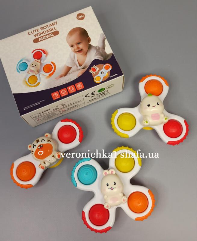 Набор детских спиннеров на присоске - хитовые игрушки покорили миллионы малышей! Игрушка, от которой детки не смогут оторваться. Особенности: • Погремушка выполнена в виде популярного антистресса спиннера, но при этом адаптирована для самых маленьких пользователей, и имеет универсальную возрастную категорию – для детей в возрасте от 6 месяцев. • С помощью присоски можно крепить на столе, стене, полу, стульчике для кормления, в ванной комнате и вообще на любой гладкой поверхности или брать на прогулку, спиннер это - игрушка которой можно играть где угодно! Она будет привлекать малыша, и занимать его досуг на длительное время. • В набор входит 3шт. спиннера, упакованные в красивую подарочную упаковку.