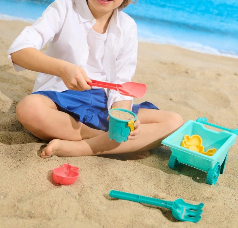 Фирменный набор игрушек для песка. Поддерживает развитие мелкой тематики, стимулирует воображение, влияет на сенсорное развитие, изучение распознавания цветов и форм. Материал: 100% полипропилен.
