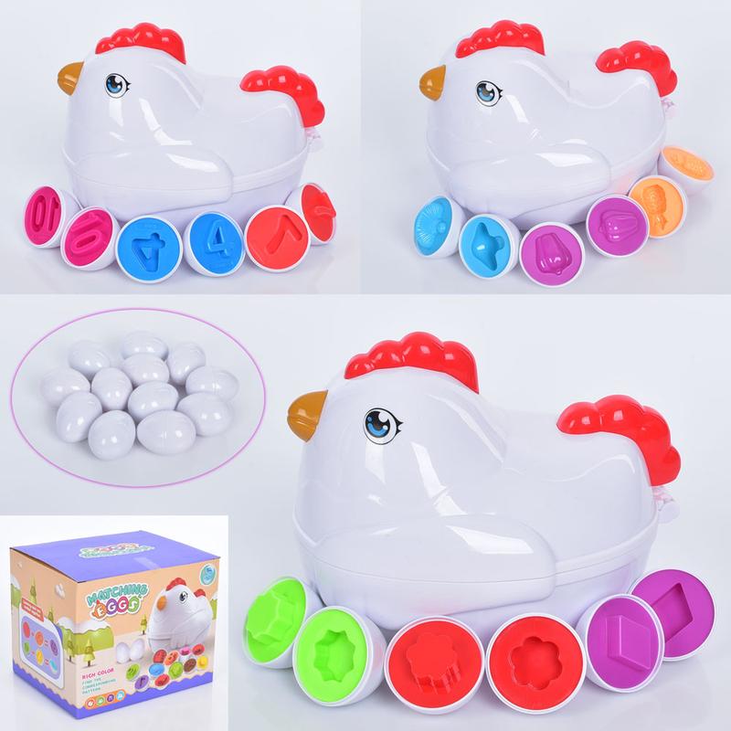 Развивающая игрушка каталка СОРТЕР - это отличный способ помочь малышу развивать моторику и координацию движений, а также знакомиться с цифрами, фруктами и геометрическими фигурами. Каталка выполнена в виде яркой курочки с 12-мя яйцами, которые малыш может вынимать и вставлять обратно в каталку, развивая тем самым мелкую моторику рук. Каждое яйцо имеет свой цвет и включает в себя цифру, фрукт или геометрическую фигуру, что позволяет ребенку учиться и развиваться в игровой форме. Каждое яйцо состоит из двух частей, внутри которого находится одна из разных фигур. Цель игры в том, чтобы сопоставить половинки с одинаковым узором и цветом. Особенности: Курочка-каталка яркого цвета с 12-мя яйцами внутри Яйца содержат цифры, фрукты и геометрические фигуры Развивает моторику, координацию движений и знакомит ребенка с числами, фруктами и геометрическими фигурами Изготовлена из безопасных материалов, не содержащих вредных веществ