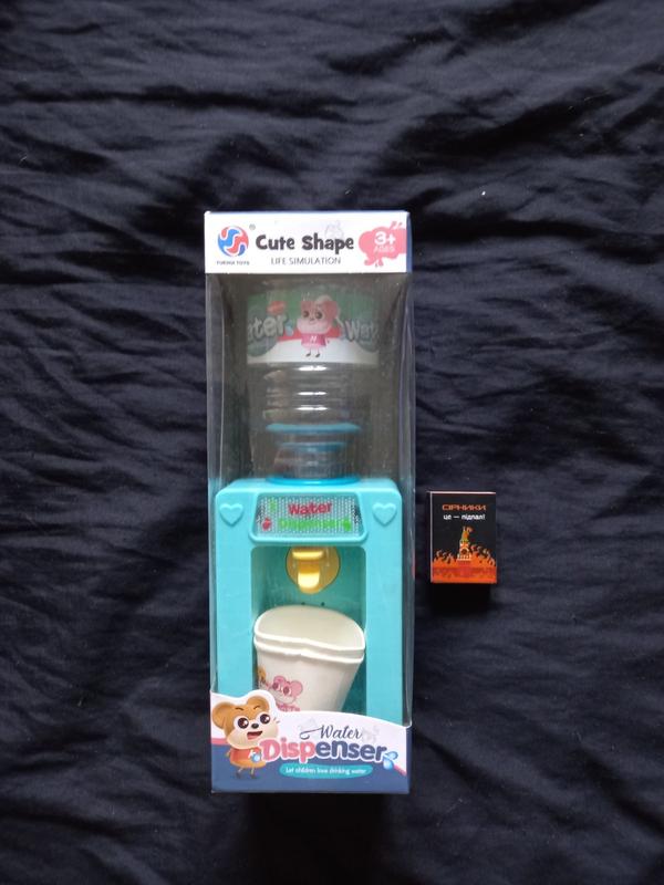 Кулер для води. Новый, запечатанный. При наливе воды включается подсветка и звук пузырька воды. Работает от двух палочных батареек (в комплект НЕ входят). Размер упаковки 26,5 8,5 9 см.