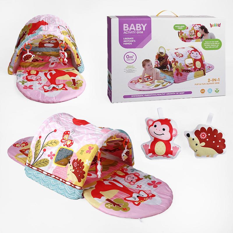 Baby Activity Gym” - коврик, специально разработанный для детей, чтобы способствовать их физическому и когнитивному развитию. Коврик имеет яркий и привлекательный дизайн, привлекающий внимание малыша и стимулирующий его изучать элементы вокруг. Раскладная конструкция позволяет быстро превратить комнату в игровую зону с мягким ковриком и уютным домиком-туннелем. Коврик изготовлен из качественных синтетических материалов, которые легко очищать, что делает его практичным в использовании. Особенности: - легкая чистка и поддержание гигиены; - мягкие игрушки-погремушки. крепящиеся на кольцах; - безопасное люстерко; - барвистий дизайн; - коврик выполнен из приятного на ощупь текстиля; - легкое соединение с туннелем; - размер коврика: 140х53 см.