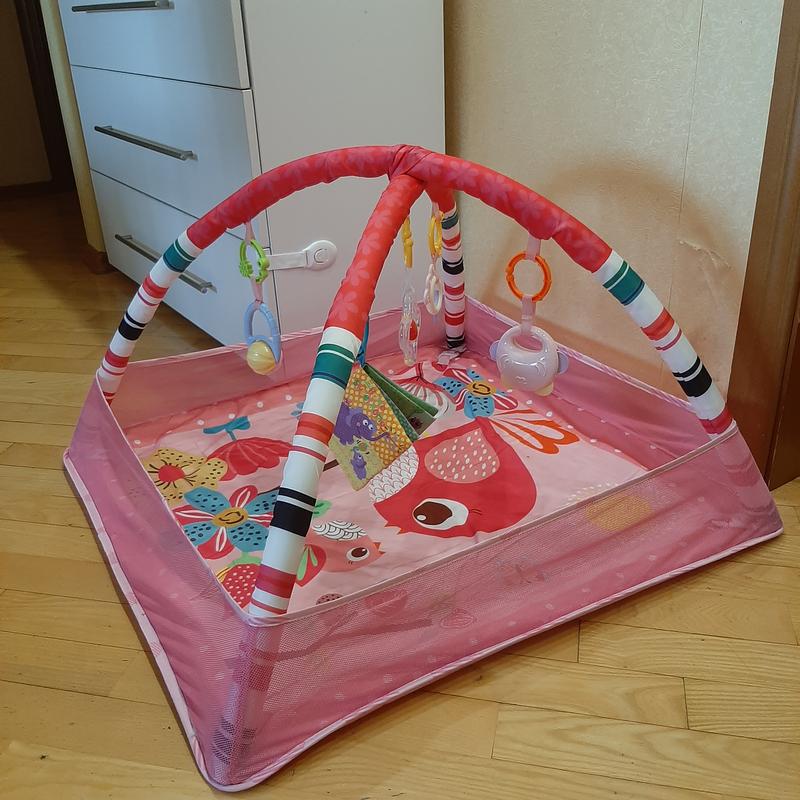 Особенности: Коврик и все элементы имеют яркие и красочные цвета и выполнены из нежного и приятного на ощупь материала; Коврик выполнен из качественного материала, не имеет неприятного запаха и токсичных элементов; Рассчитан для детей от 0 месяцев; Боковые бортики помогут ребенку остаться на коврике в моменты переворачивания; Имеет специальные дуги для подвесных игрушек; В комплекте идет 5 игрушек, которые можно снимать и использовать отдельно от коврика. Коврик в опрятном состоянии, без каких-либо недостатков. Размеры и характеристики на фото.
